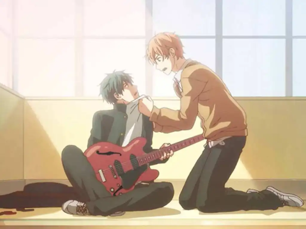 Given consistently ranks among the best gay anime for good reason. This boys' love series follows Ritsuka Uenoyama, a guitar prodigy who encounters Mafuyu Sato, a mysterious boy with a broken guitar and an incredible singing voice. As they form a band together, a deep romantic connection develops between them.